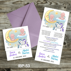 Invitatii botez cu plic colorat – gemeni – baieti – IBP-53