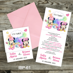Invitatii botez gemeni – fetite- cu plic colorat – Minnie Mouse – IBP-61