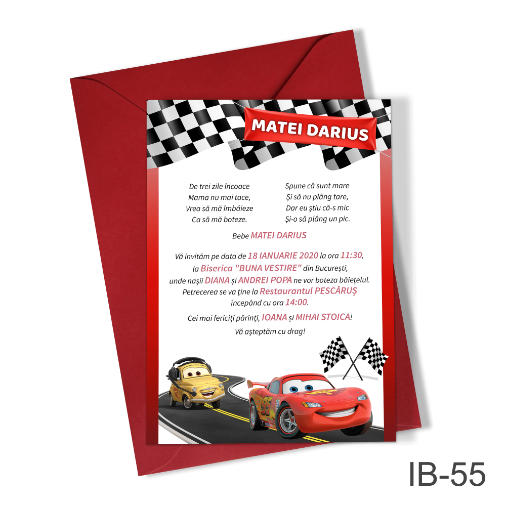 Invitatie digitala botez baieti – Fulger McQueen – Cars – IB-56