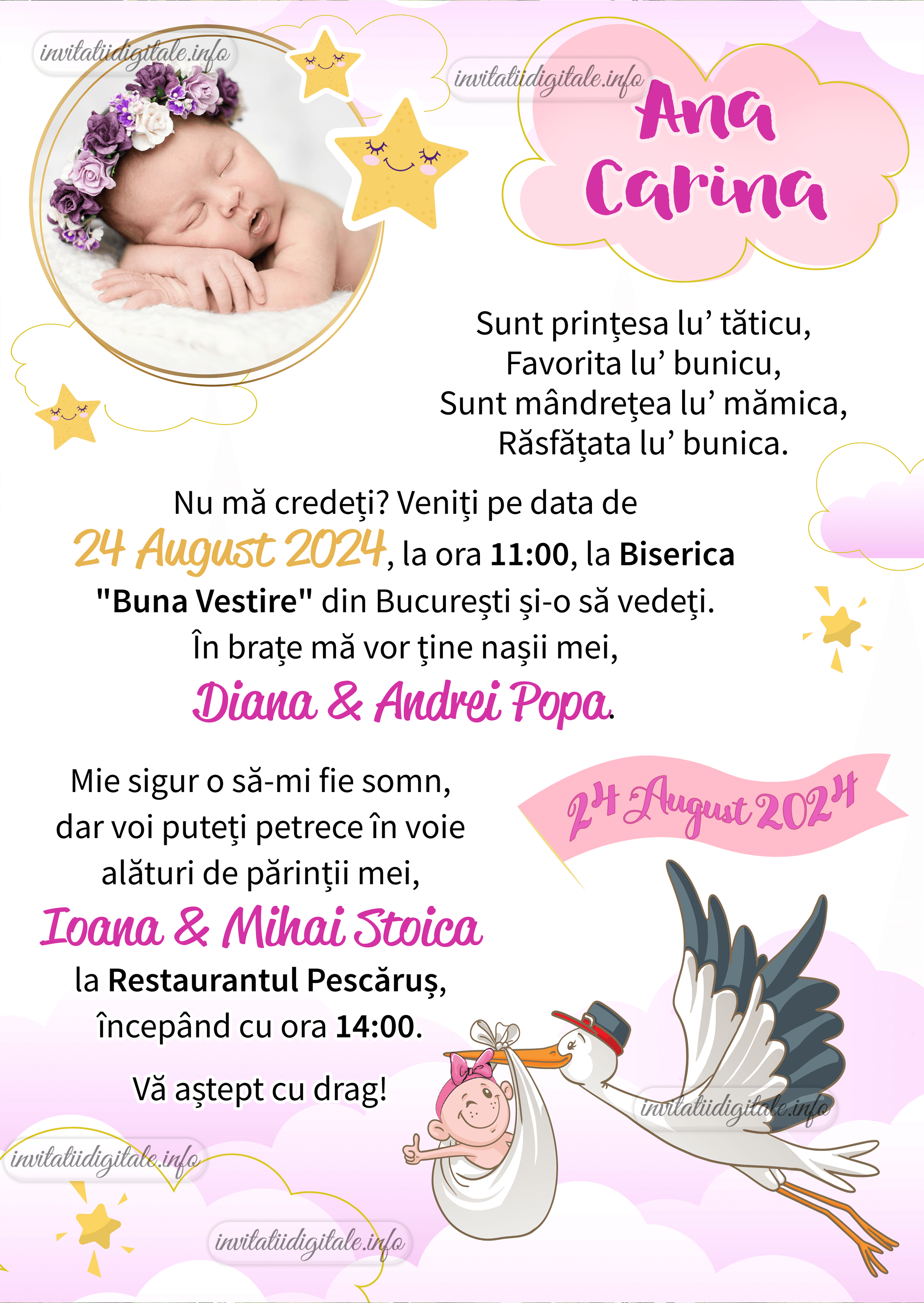 Invitatie digitala botez cu poza – fetite – Barza – IBF-61