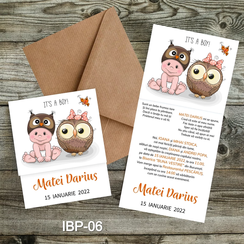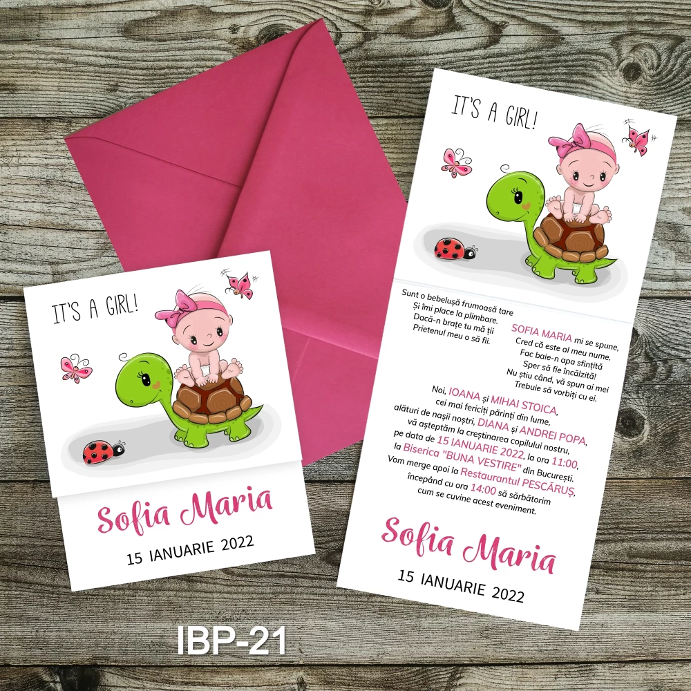 Dupa ce primim comanda, in 24-48 ore (luni-vineri), veti primi pe WhatsApp sau pe email modelul de invitatie personalizata cu informatiile trimise pentru a verifica si confirma datele.