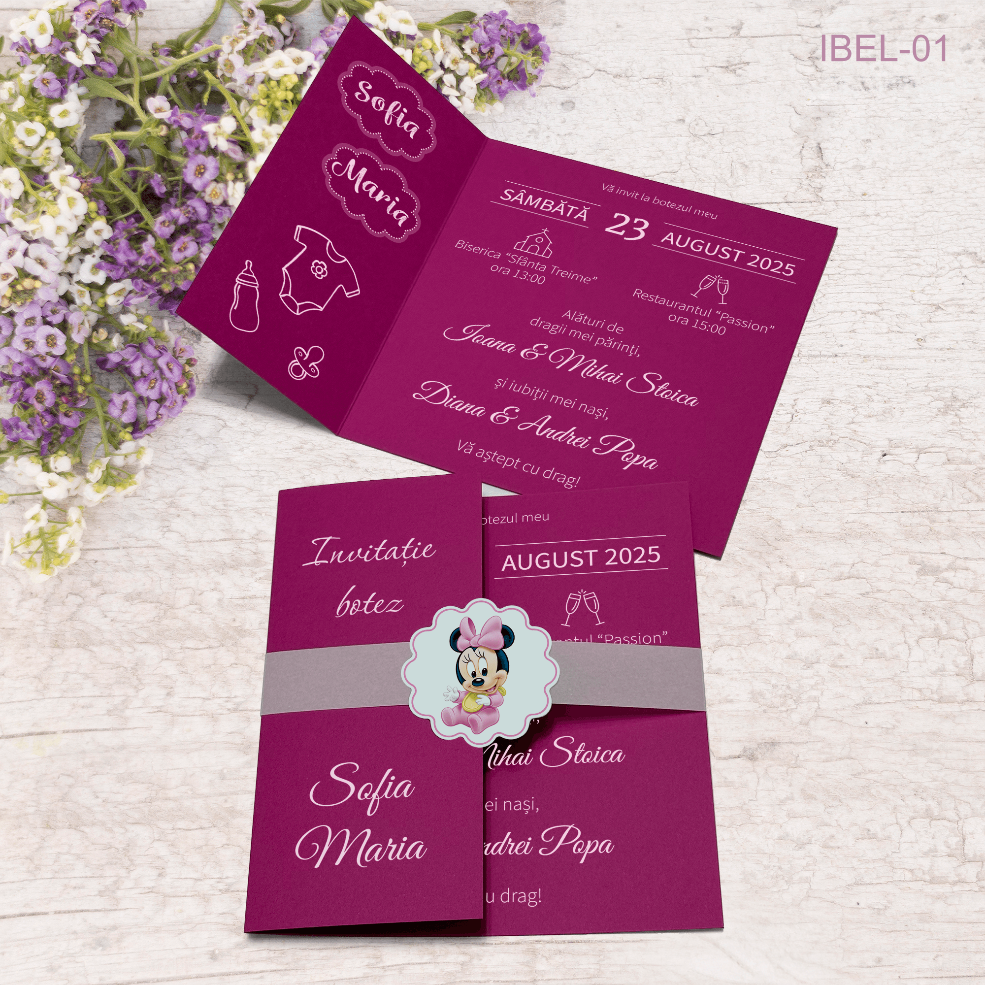 Invitatii botez elegante Minnie Mouse – IBEL-01