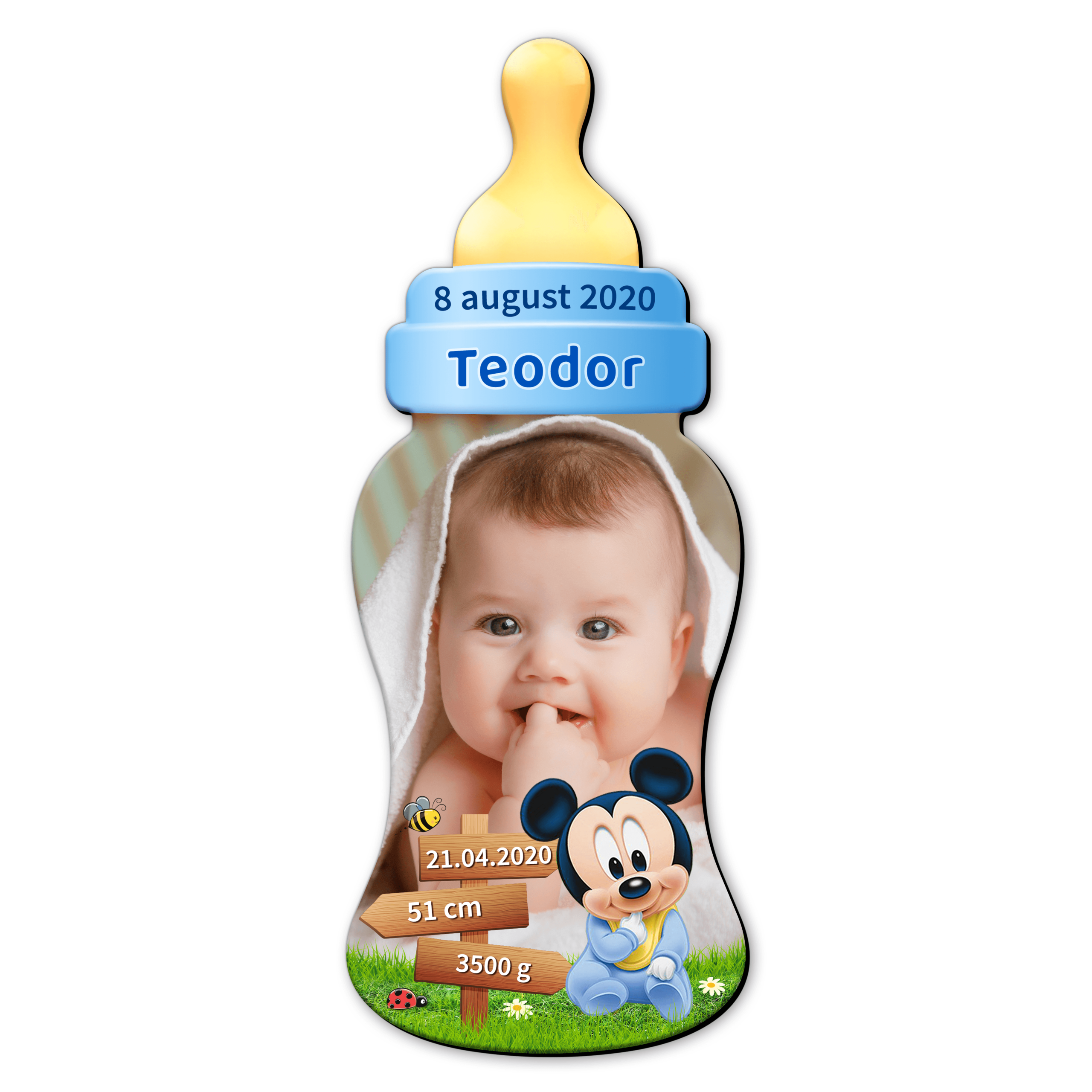 Magnet personalizat botez decupat biberon – Mickey – MCS-03