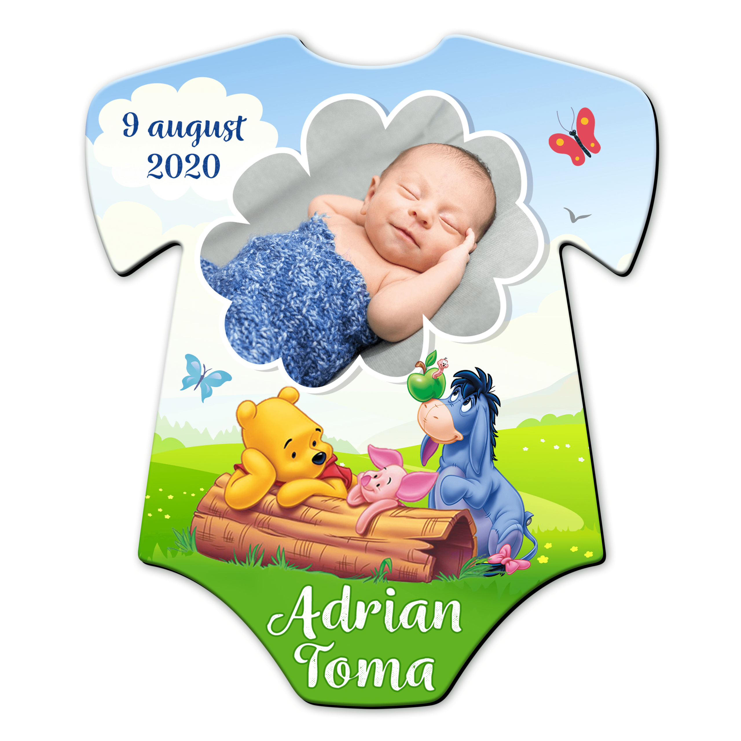 Magnet personalizat botez decupat body – Winnie the Pooh – MCH-27