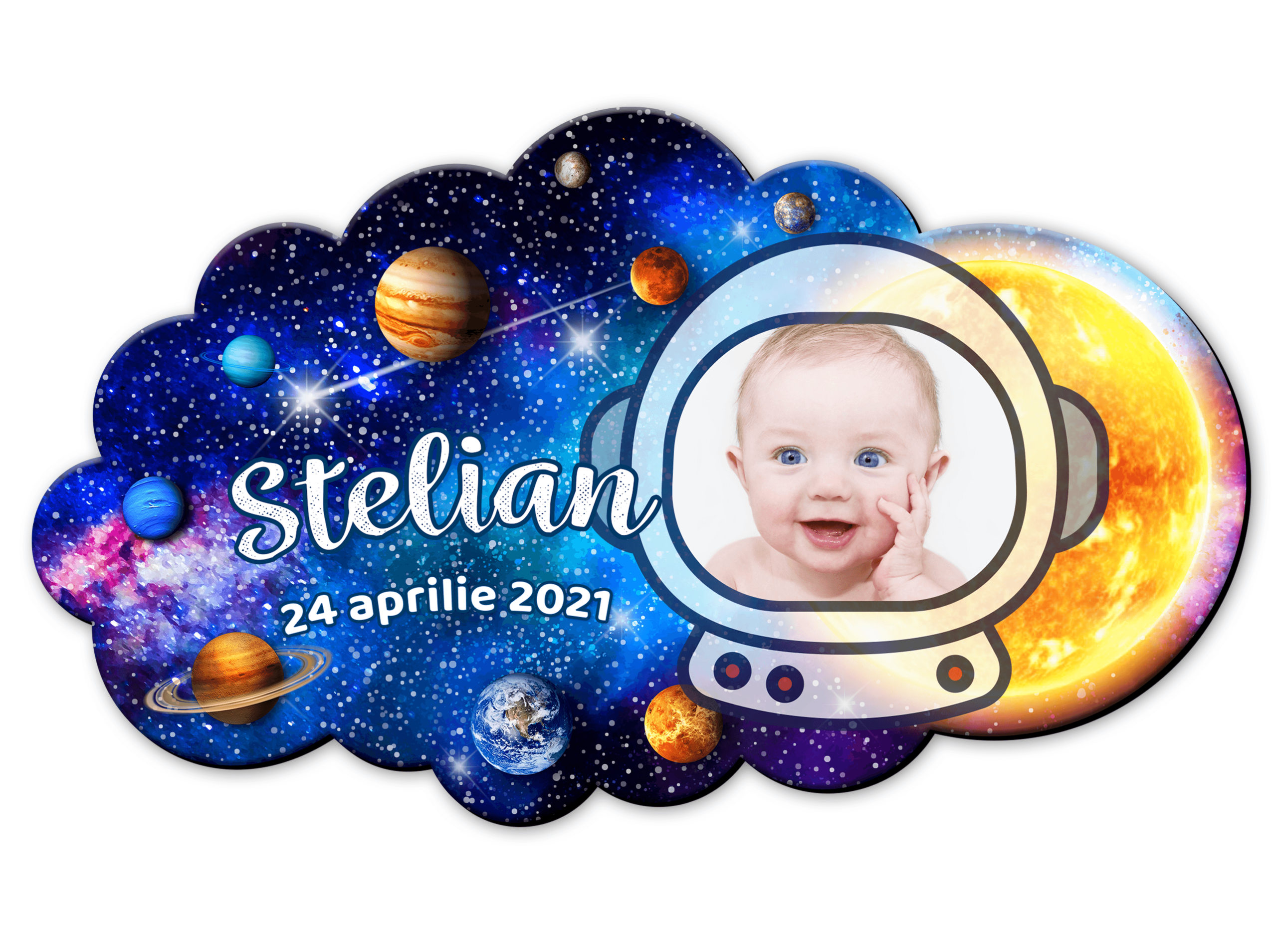 Magnet personalizat botez decupat norisor – planete – MCN-01