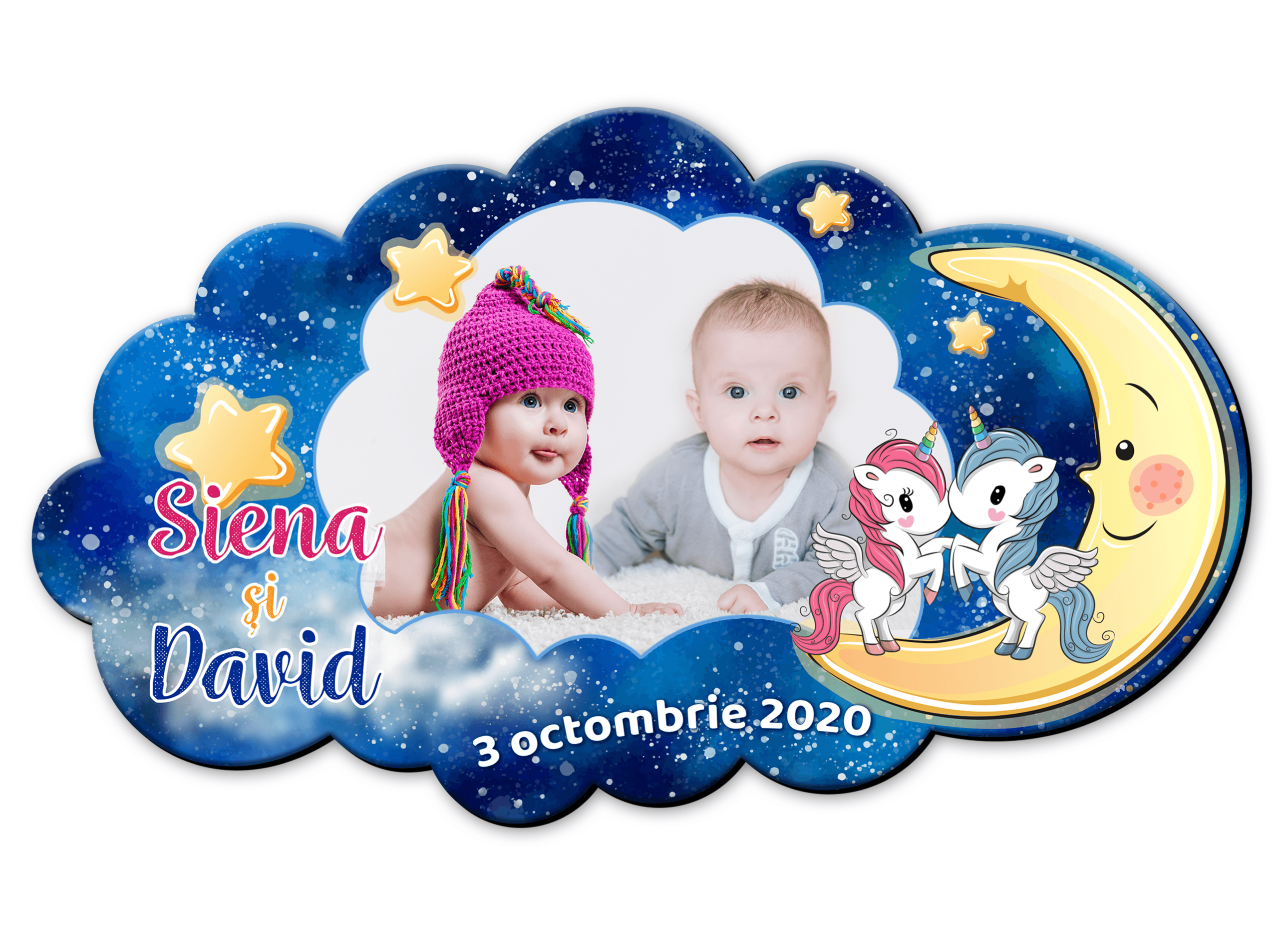 Magnet personalizat botez decupat norisor – unicorni – MCL-27