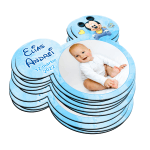 Magnetii cu Mickey Mouse, personalizati cu fotografia bebelusului sunt un cadou special oferit ca marturie de botez.