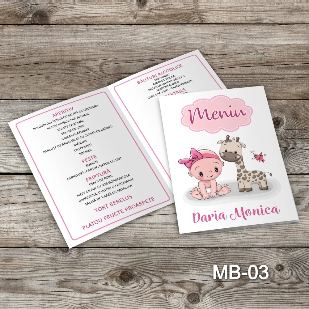 Meniurile pentru botez tip carte sunt realizate din carton mat de 250g/mp.