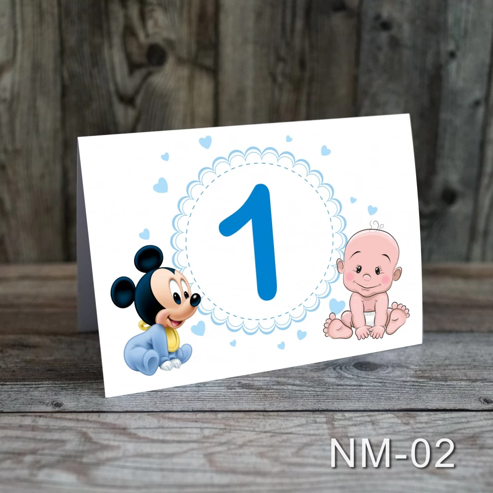 Numere de masa pentru botez cu tema Baietel si Bufnita.