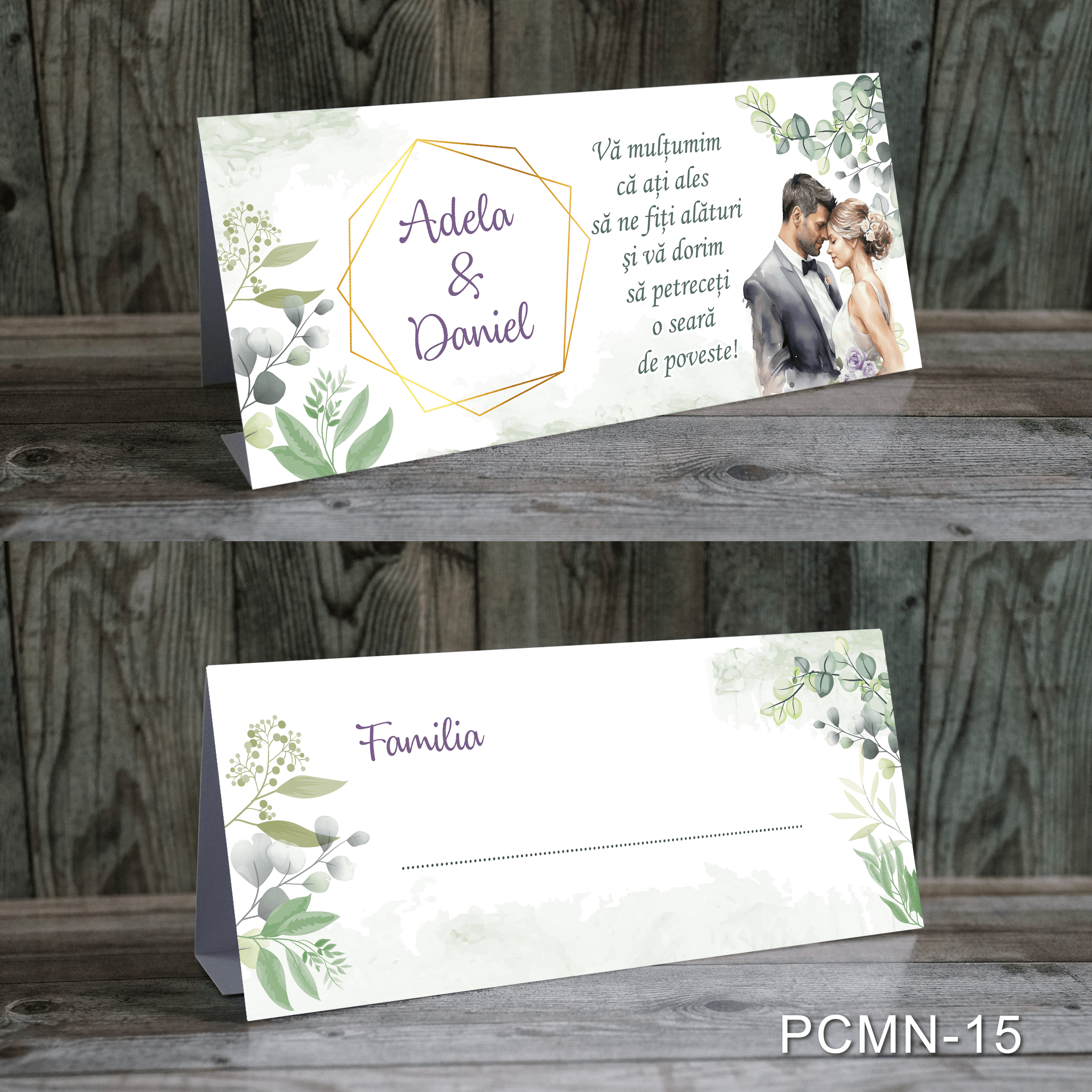 Plicurile de bani pentru nunta au si functionalitatea de carduri de masa si contin un mesaj de bun venit. Optional, se pot printa si cu numele persoanelor participante.