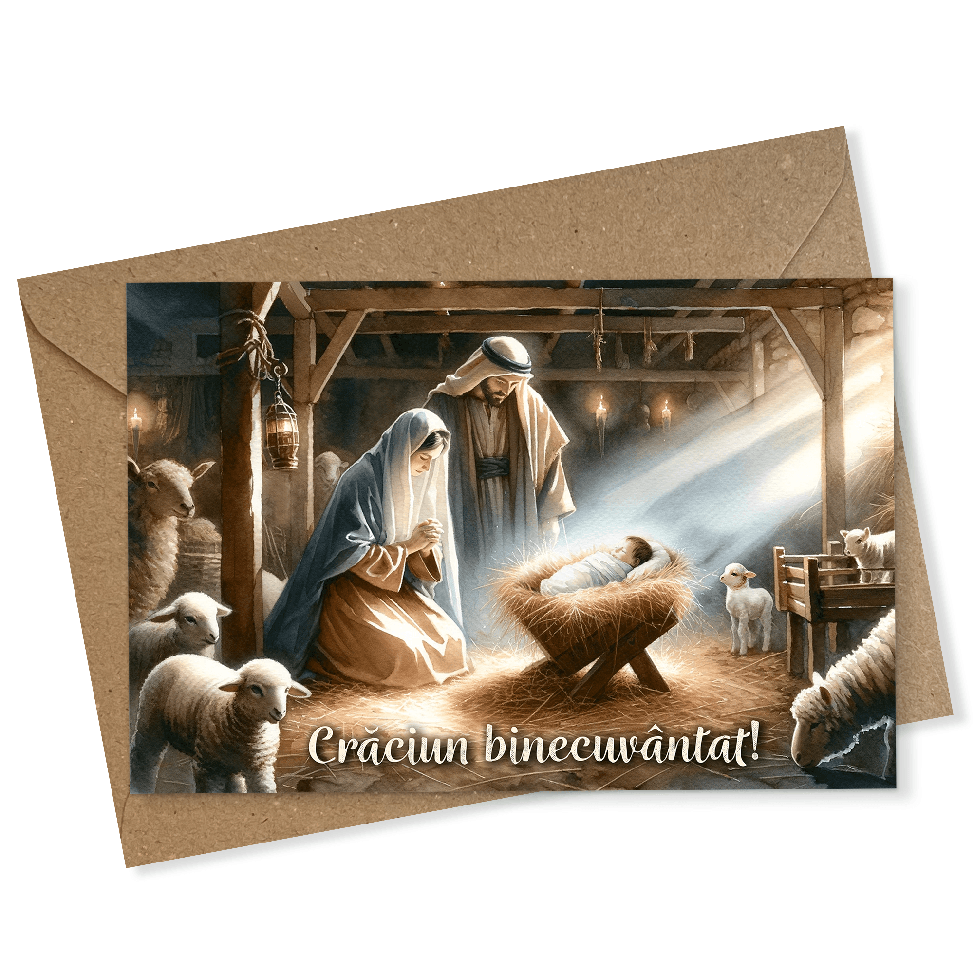 Set 5 felicitari de Craciun cu Nasterea Domnului 10×15 cm cu plic vintage inclus – FC-52