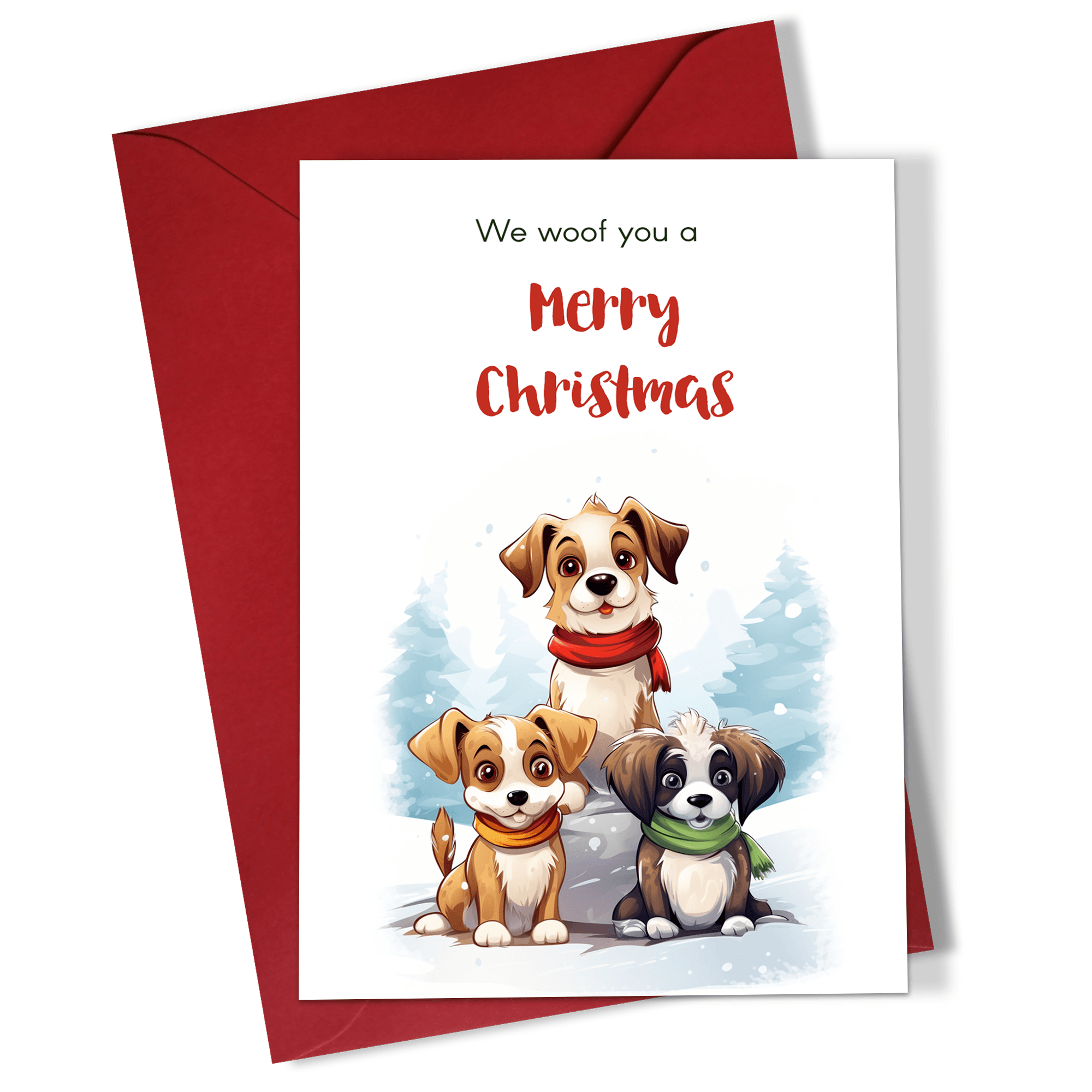Set 5 felicitari in engleza de Craciun 10×15 cm cu plic rosu inclus – Catelusi – FC-74