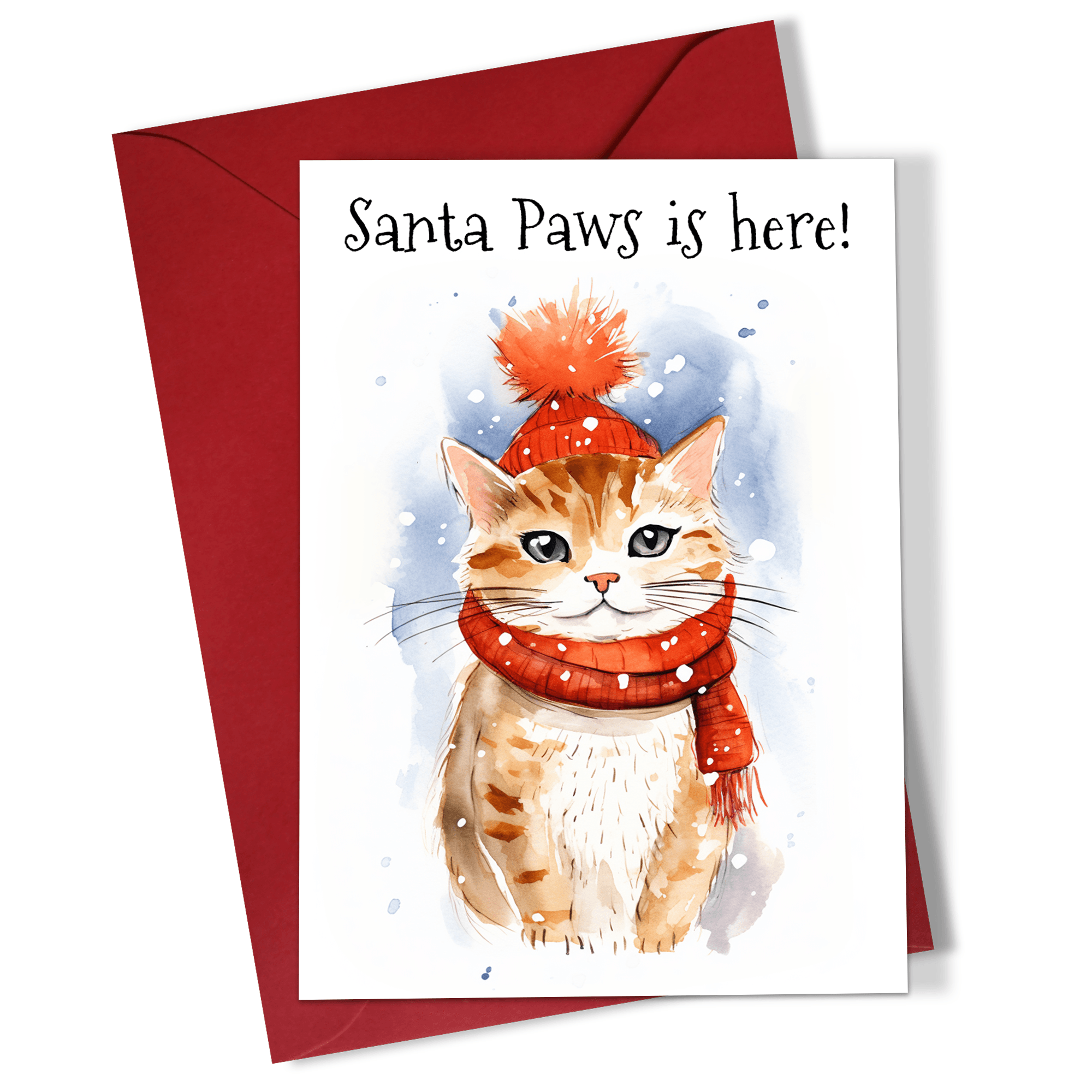 Set 5 felicitari in engleza de Craciun 10×15 cm cu plic rosu inclus – Pisica – FC-78