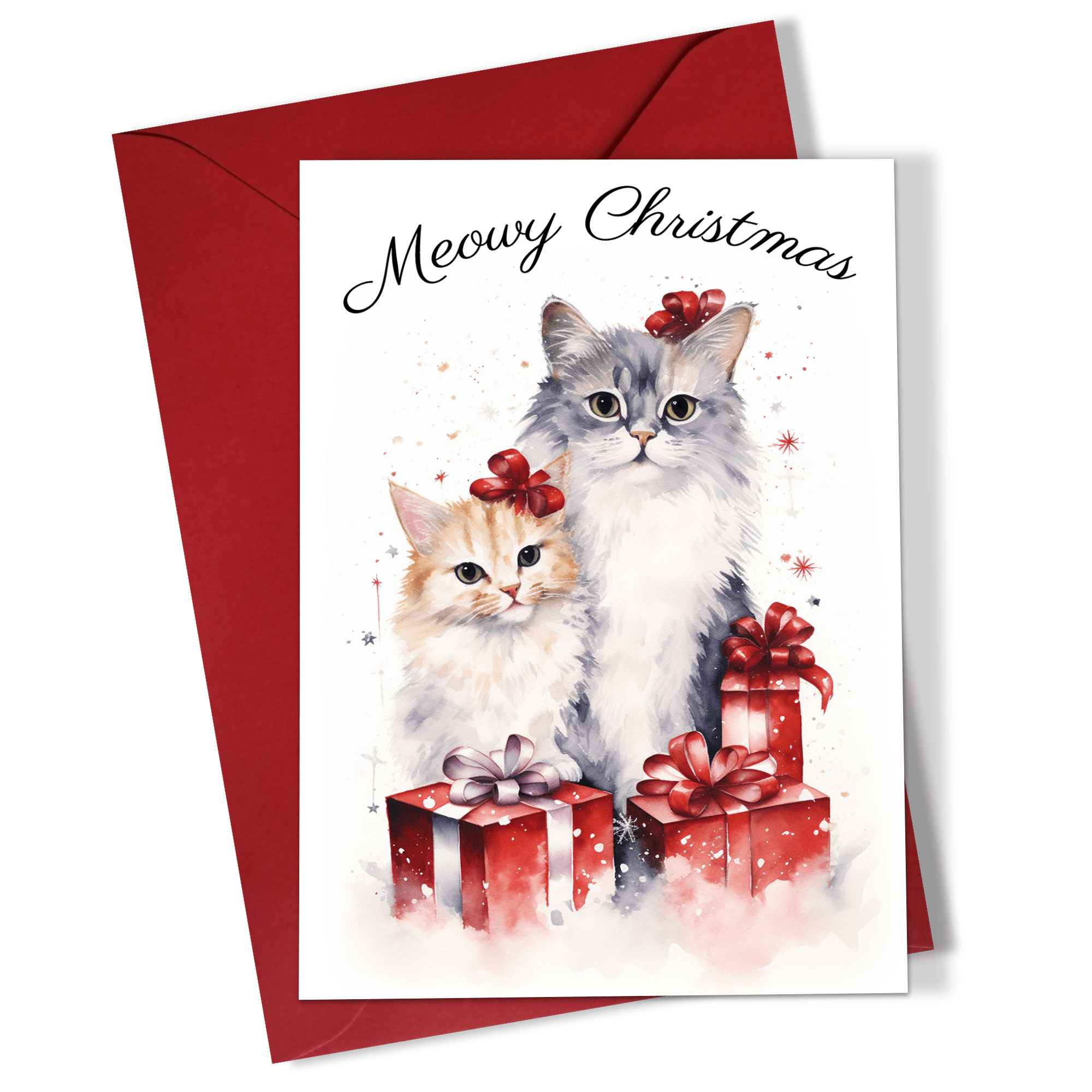 Set 5 felicitari in engleza de Craciun 10×15 cm cu plic rosu inclus – Pisici – FC-76