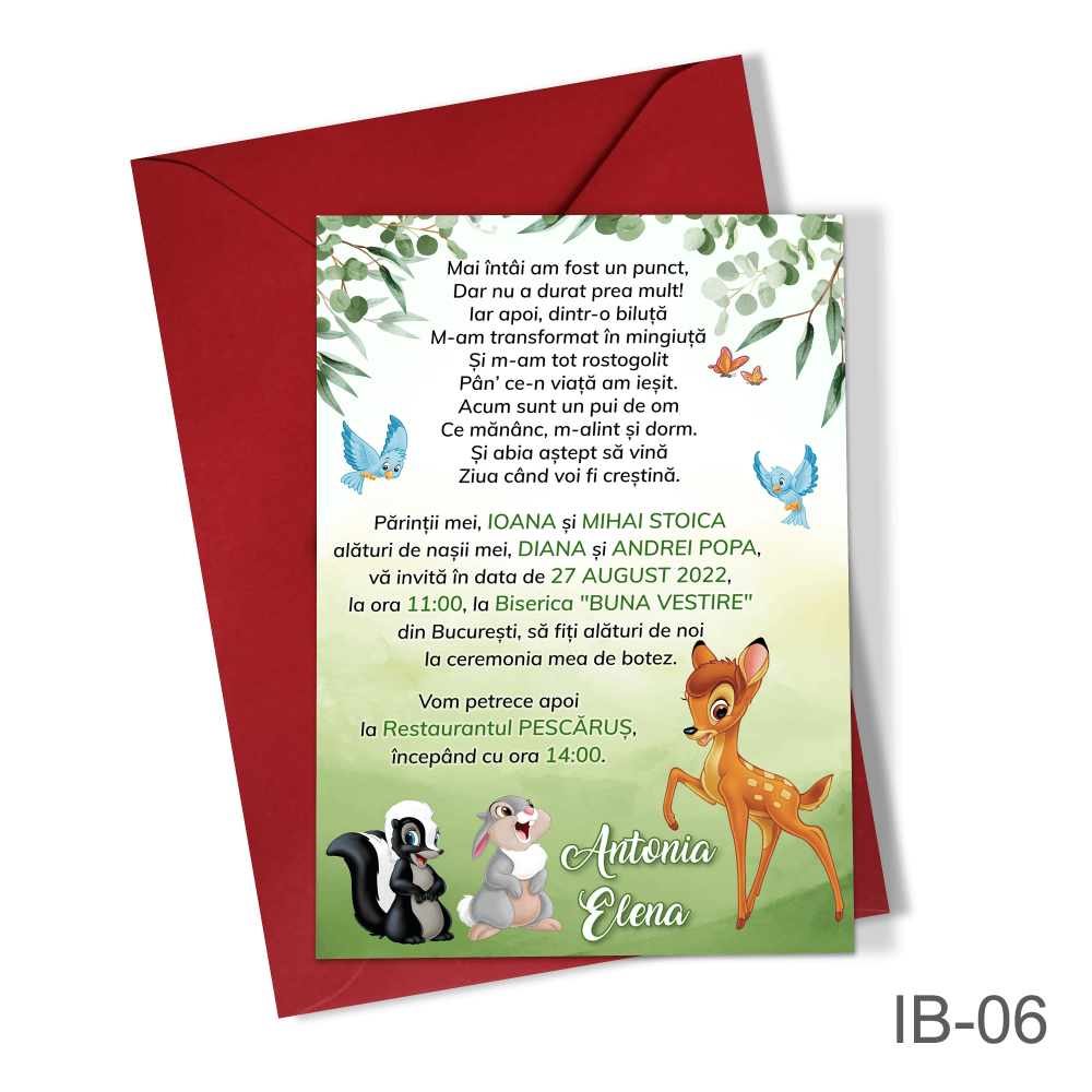 Invitatii botez fetite cu plic colorat – Barza – IB-12