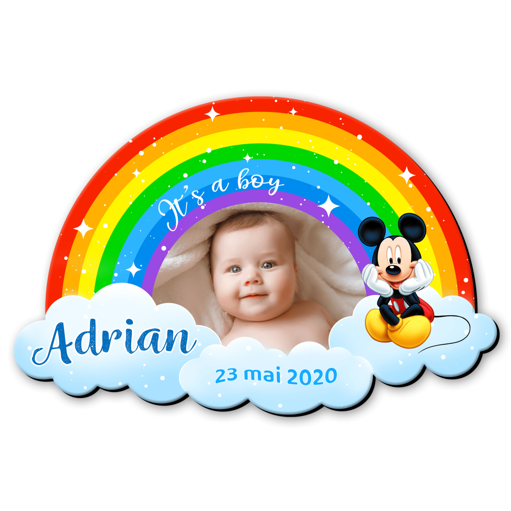 Magnet personalizat botez decupat curcubeu – Mickey – MCC-16